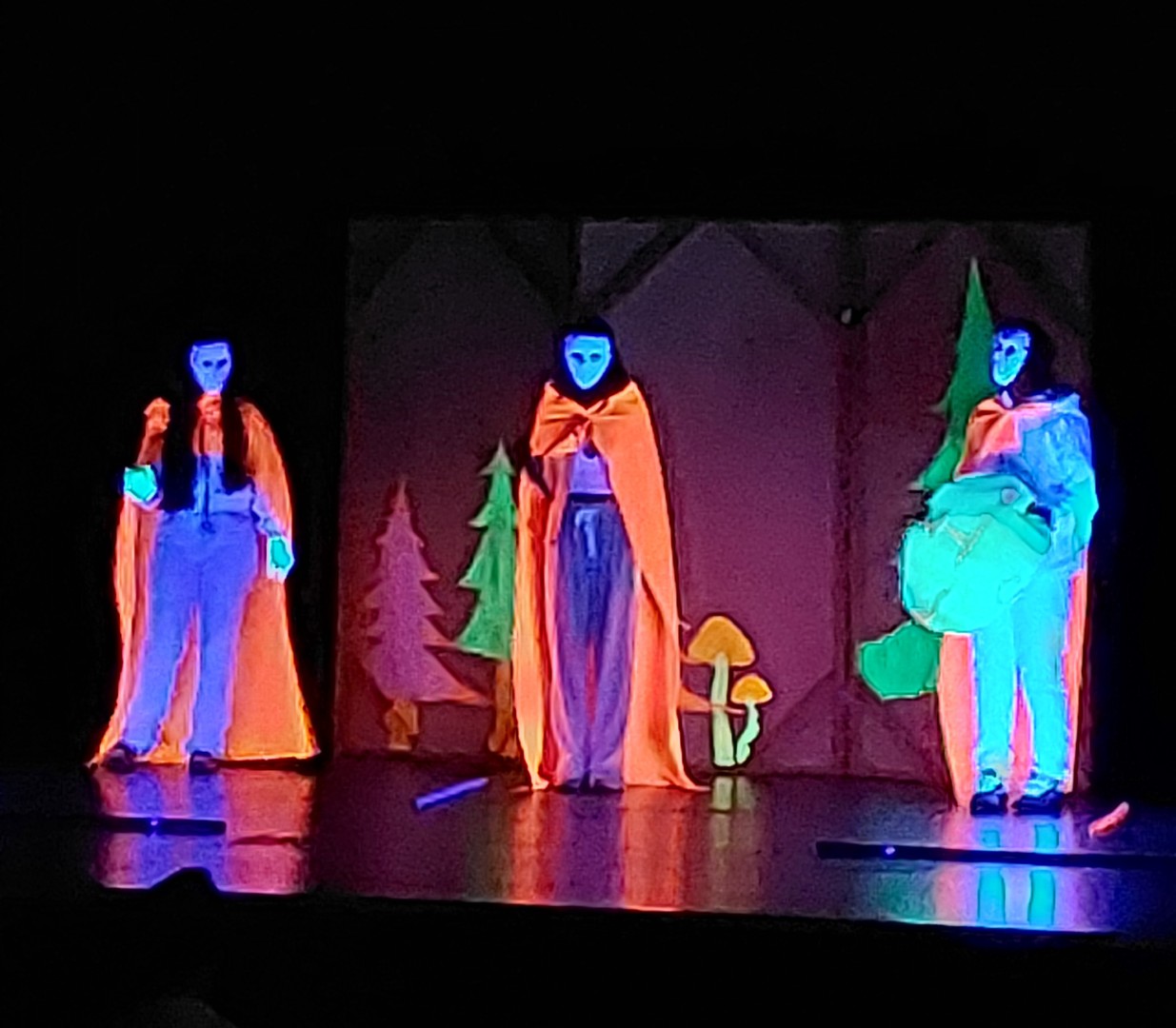 Der Jahrgang 9 inszenierte ein fantasievolles Schwarzlichttheater, in dem Licht, Farbe und Bewegung ganz besonders zum Ausdruck kamen. In einer Sequenz spielte die Romanfigur Harry Potter eine besondere Rolle.